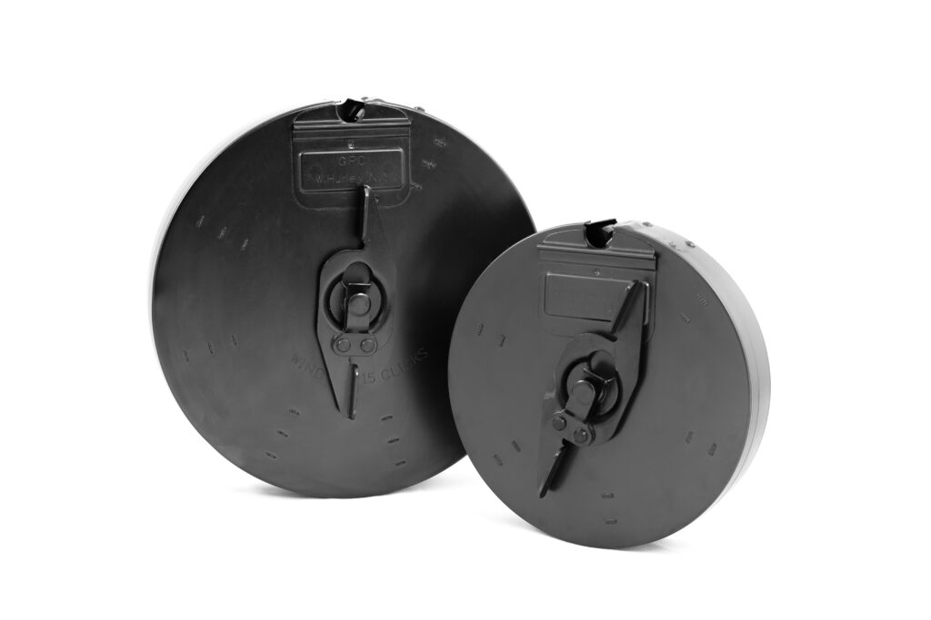 | Drum Magazines | 1. High ammunition capacity. 2. Reduced need for frequent reloading. 3. Suitable for sustained fire or extended shooting sessions. | 1. Bulky and heavy, affecting firearm balance. 2. More prone to jamming compared to box magazines. 3. Higher cost compared to other types. |